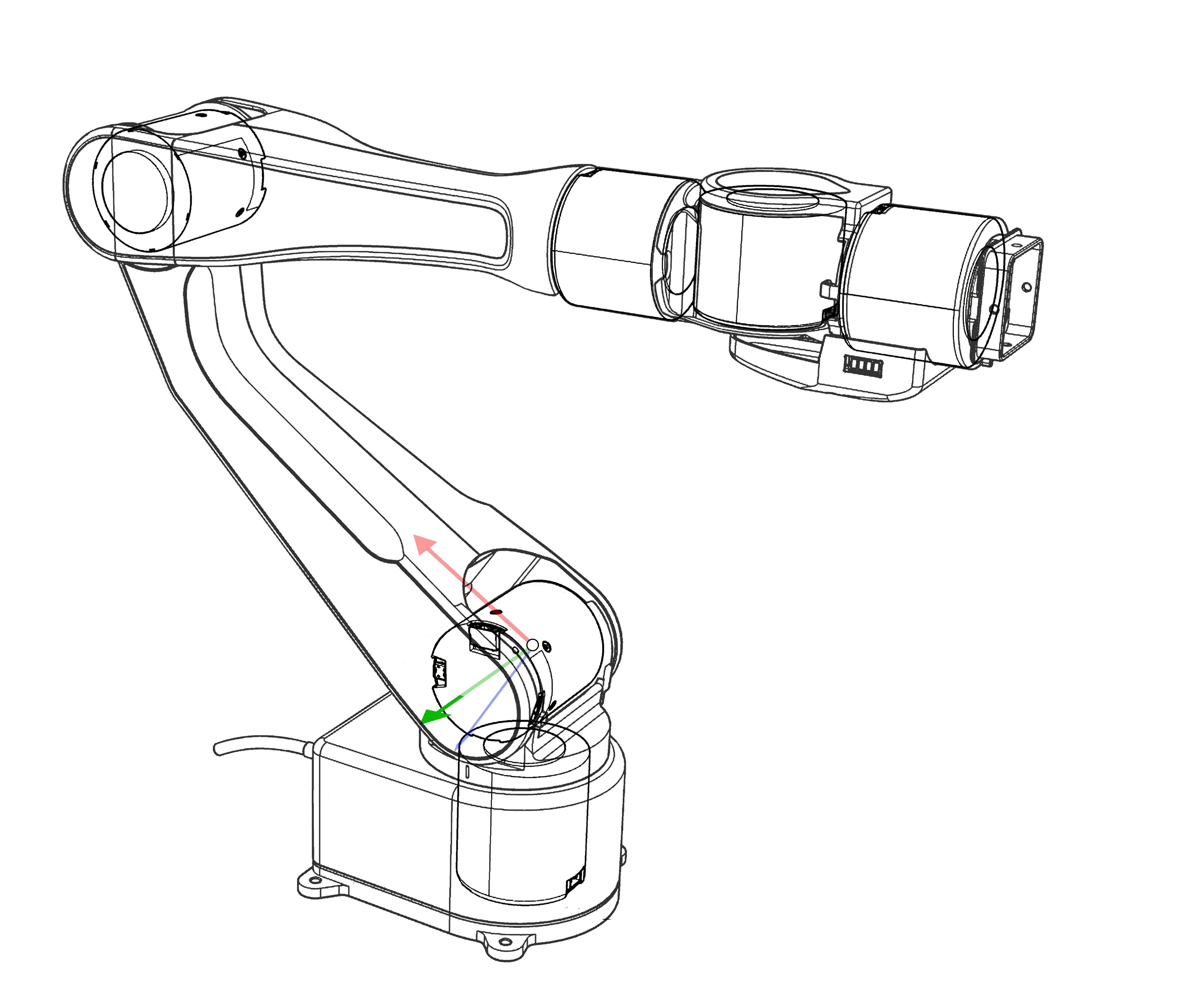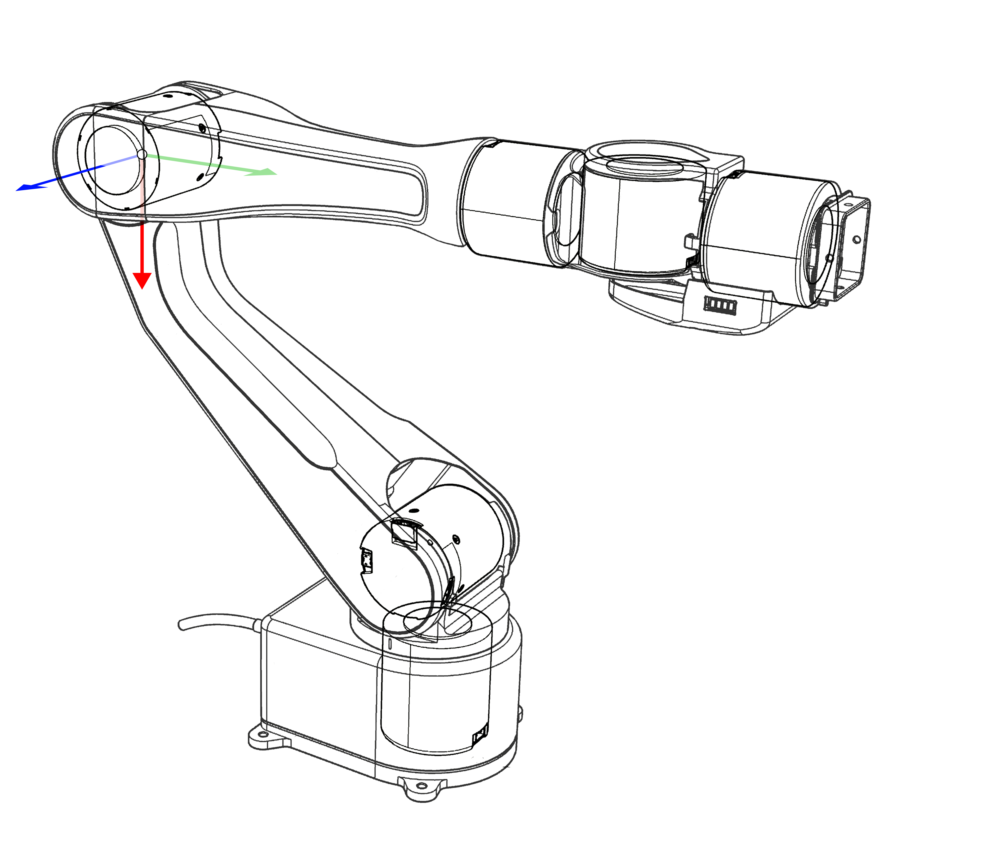 各关节坐标系定义基于右手系,参见下方图片,坐标系的 XYZ 轴的颜色设置为: X 轴 - 红色,Y 轴 - 绿色,Z 轴 - 蓝色。 颜色朝向表示该坐标轴的正方向。